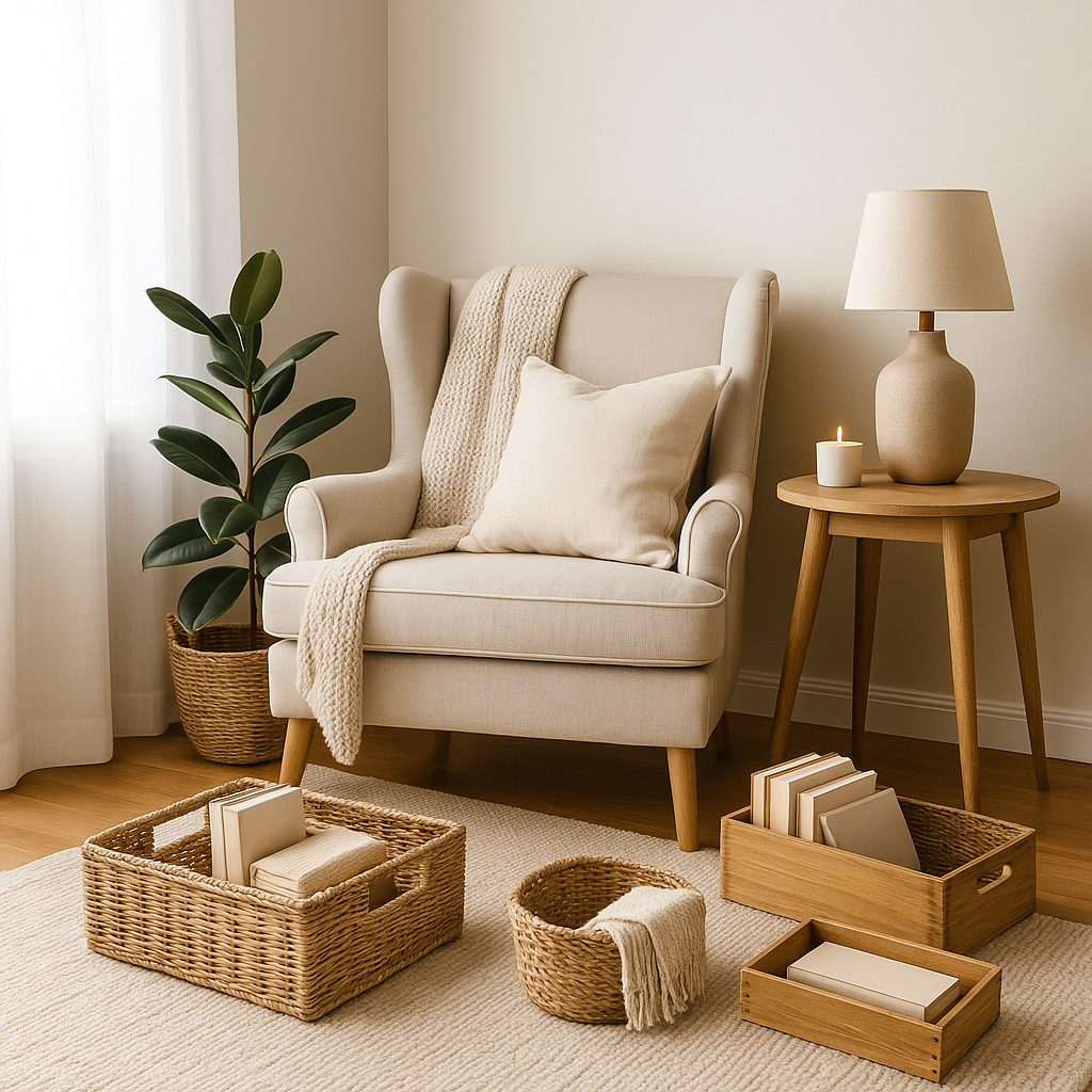 Desde cestasdemimbre.com, te contamos cómo crear ese rincón perfecto de lectura utilizando cestas, bandejas, textiles suaves y decoración orgánica que respira serenidad.