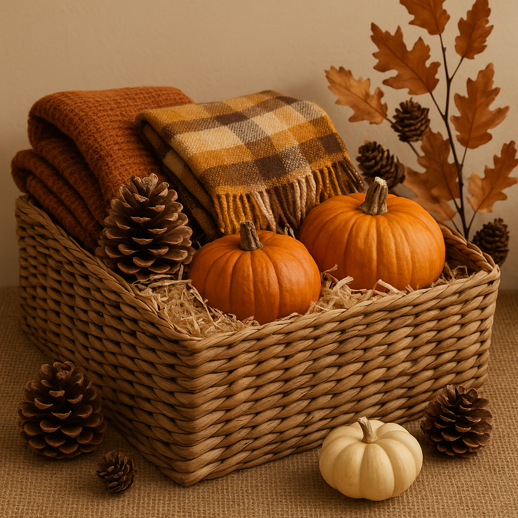 El otoño es perfecto para dar un aire acogedor al comercio. Las cestas con estructura firme, tonos cálidos y viruta natural funcionan como contenedores para artículos de papelería, velas, complementos, alimentación artesanal o moda de entretiempo.