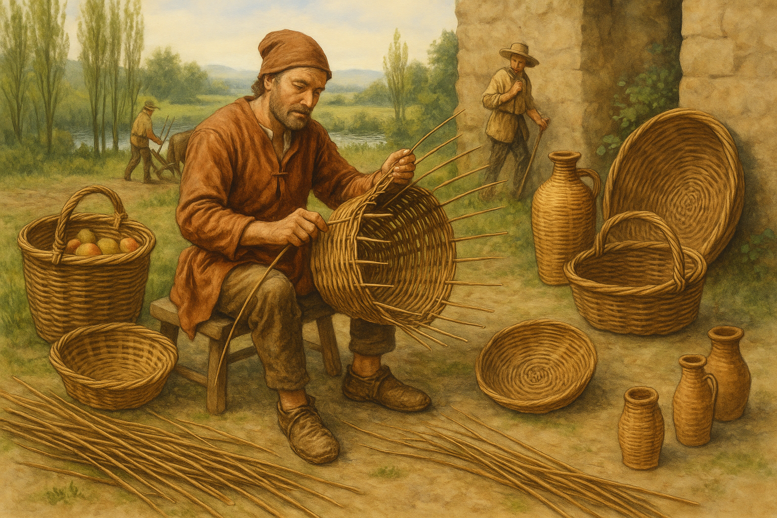 El uso del mimbre en la península ibérica está documentado desde la Edad Media. Las comunidades rurales empleaban esta fibra para elaborar recipientes de almacenaje, herramientas de trabajo agrícola y objetos para el día a día.